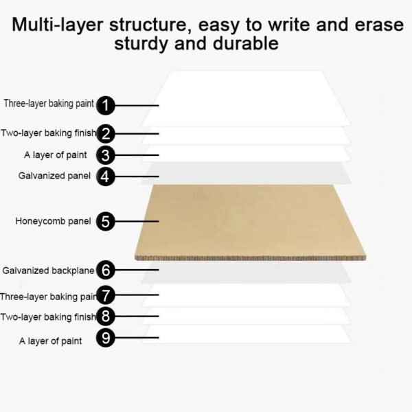 Built with a strong aluminum frame and honeycomb core, this whiteboard ensures long-term durability, high flatness, and resistance to deformation.