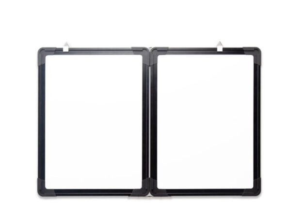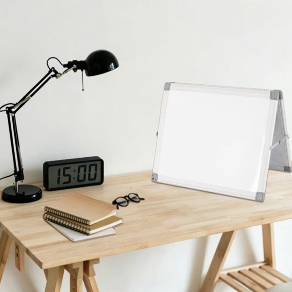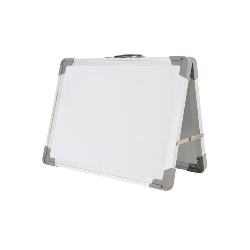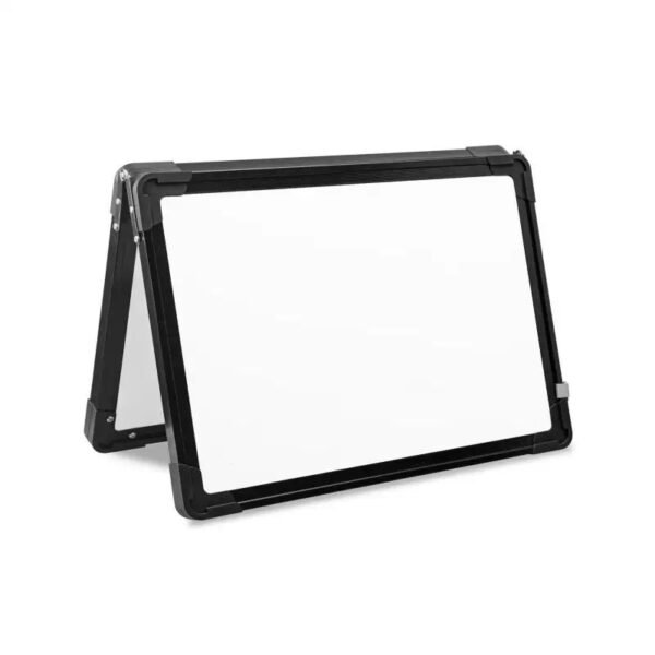 This dual-sided foldable whiteboard is designed for convenient writing and display in various environments.